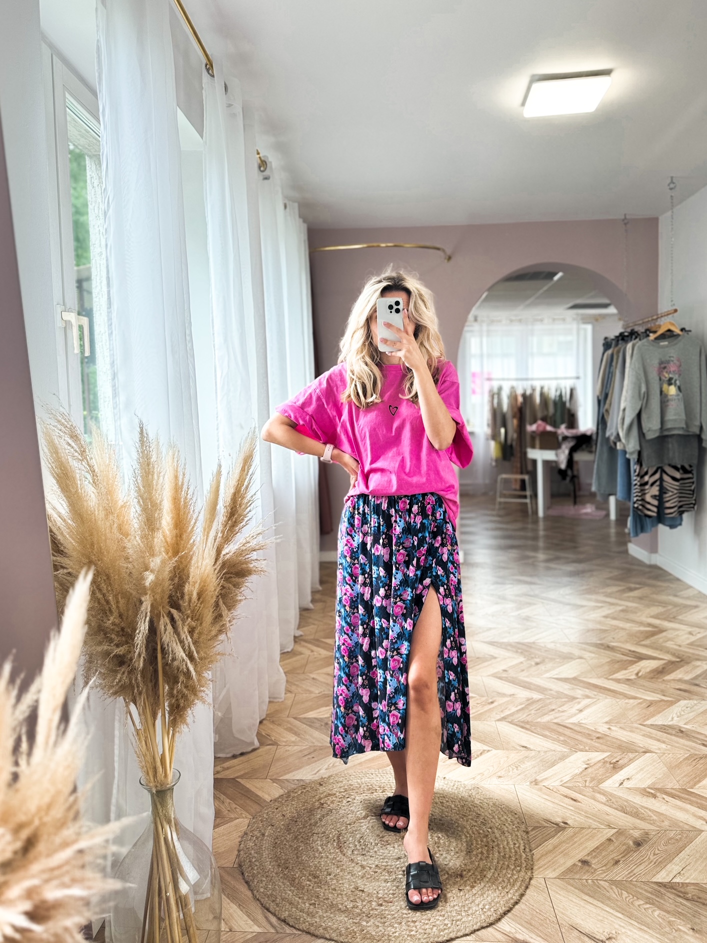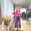 Wiskozowa spódnica z dwoma rozcięciami po bokach oraz gumką w talii. Rozmiar uniwersalny.