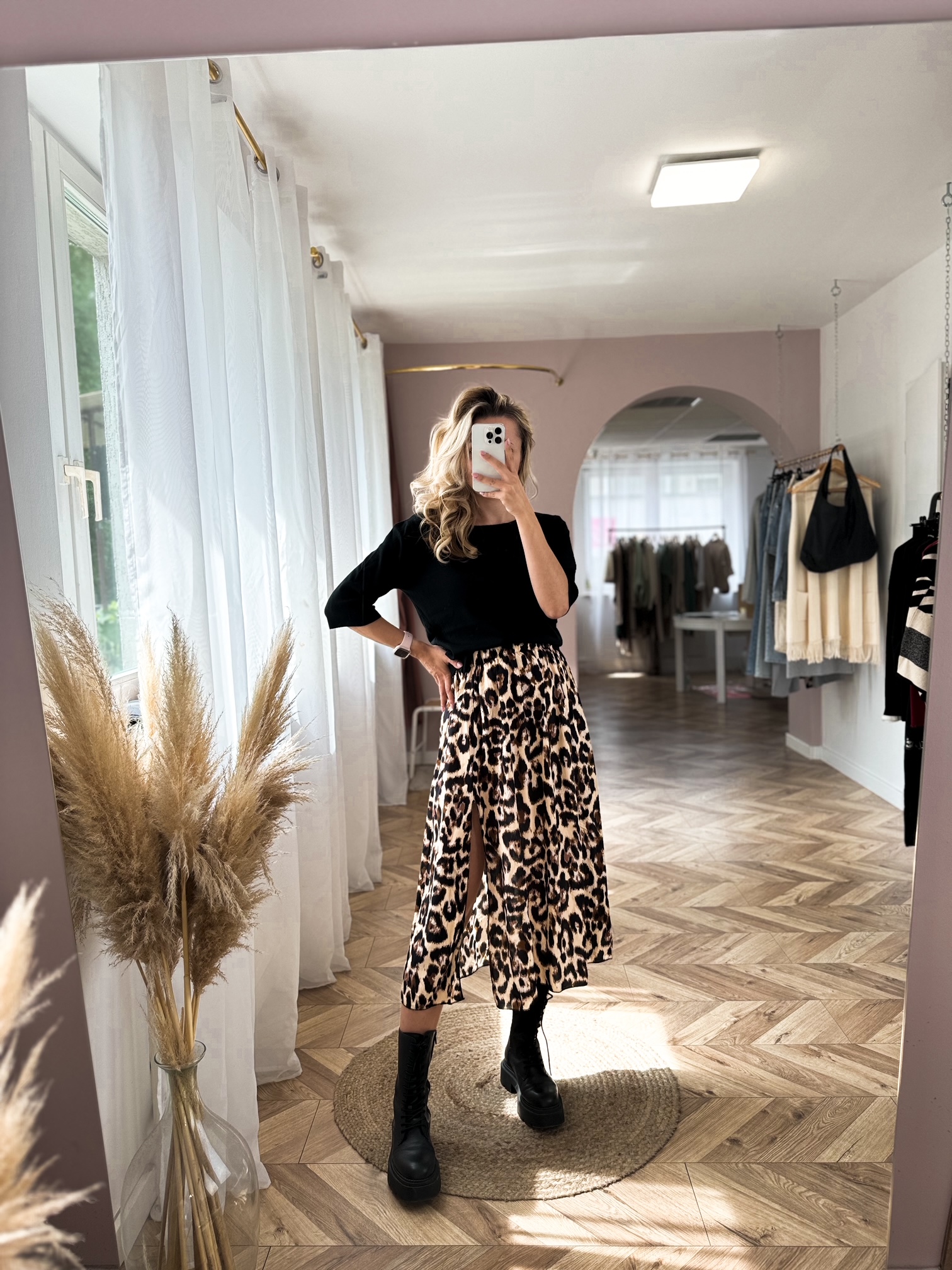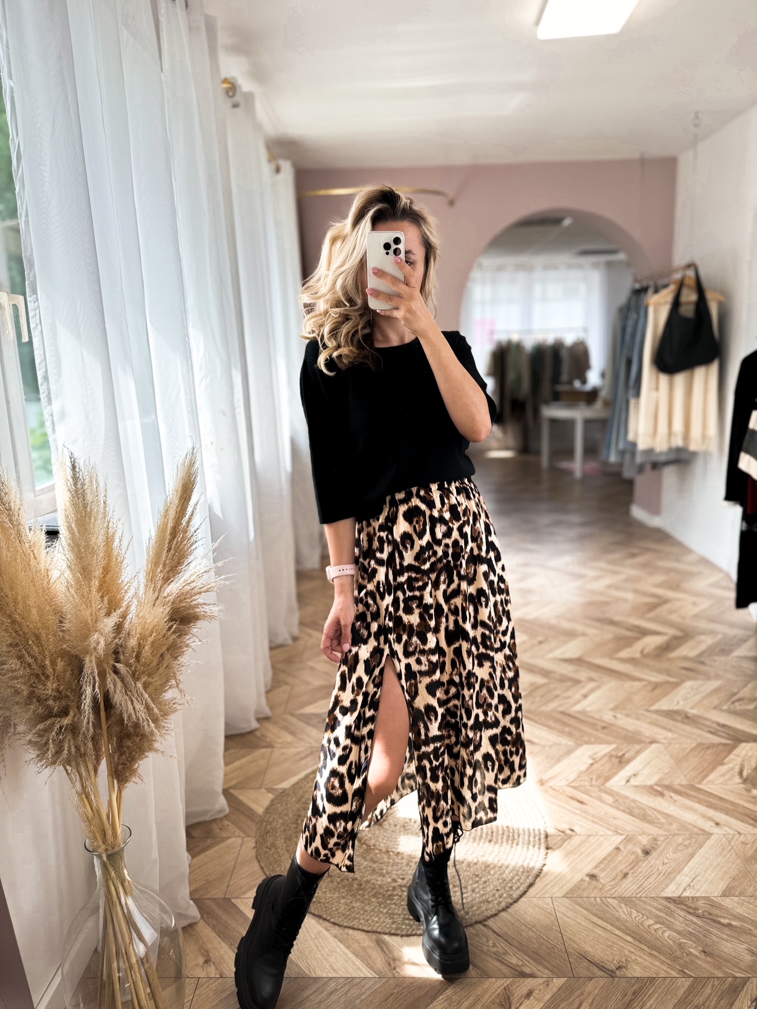 Wiskozowa spódnica z gumką w talii oraz rozcięciem z boku. Rozmiar uniwersalny dobry do rozmiaru XL.