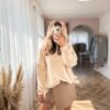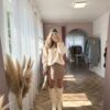 Spódnico-szorty w kolorze ciemnego beżu. Zapinane na kryty zamek oraz wiązane na lewym boku. Posiadają średni stan. Rozmiar uniwersalny. Produkt polski.