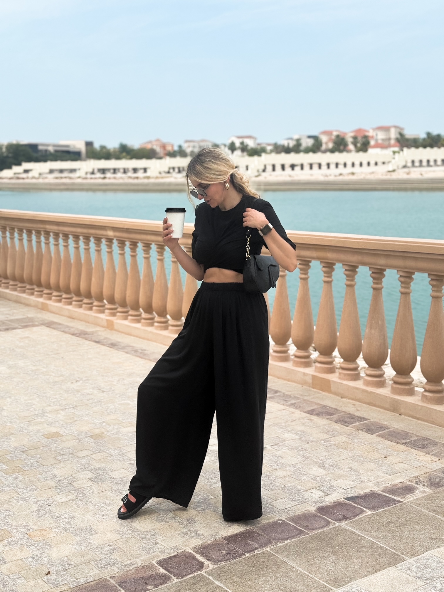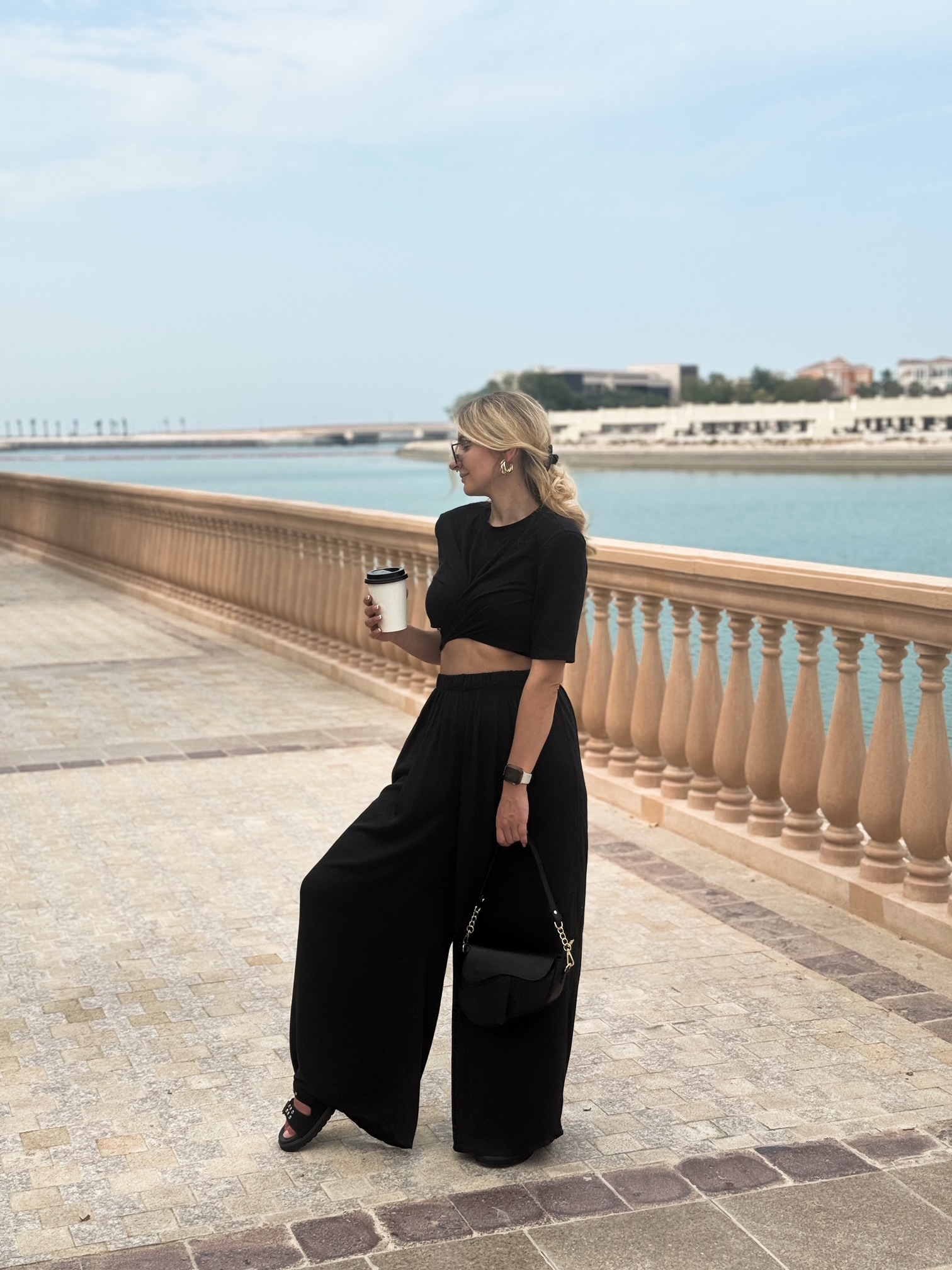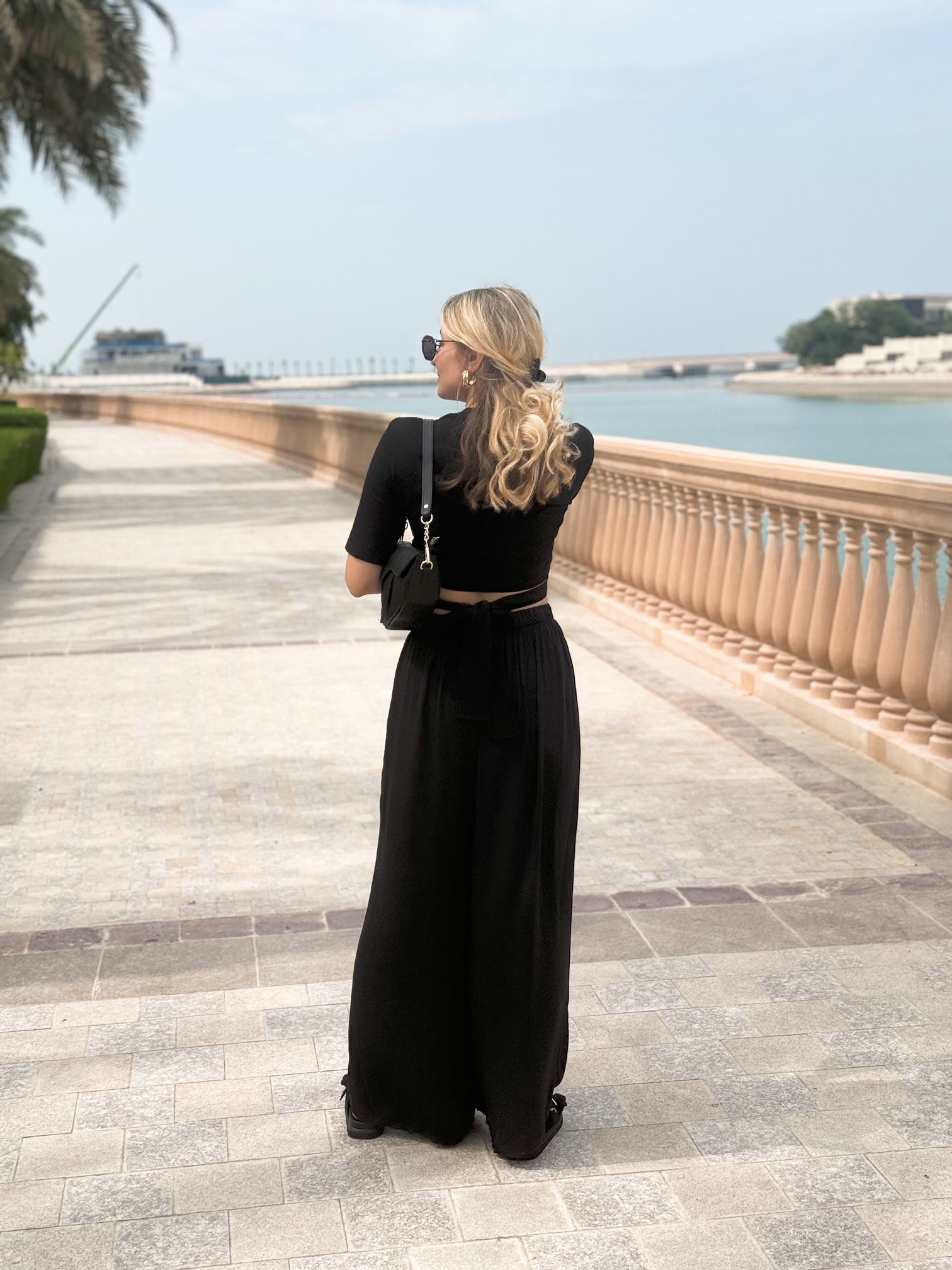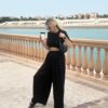 Wiskozowe szerokie spodnie z gumką w pasie. Rozmiar uniwersalny – dobry od S do XL.