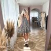 Muślinowa sukienka na wiązanych regulowanych ramiączkach, zakończona falbanką. Rozmiar uniwersalny – dobra do rozmiaru XS do XL.