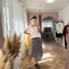 Laserowo cięty t-shirt z krótkim rękawem o oversizowym stroju. Rozmiar uniwersalny – dobry do XS do XL.